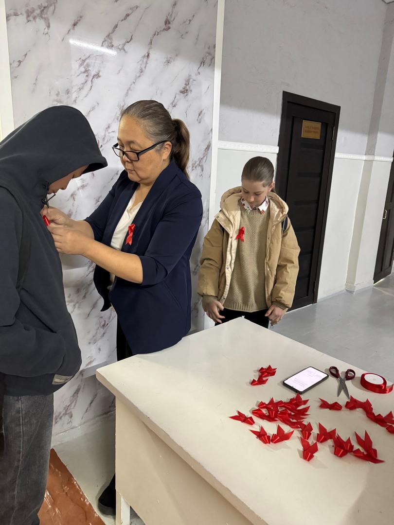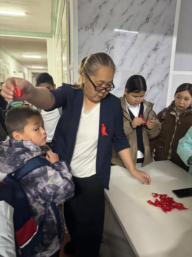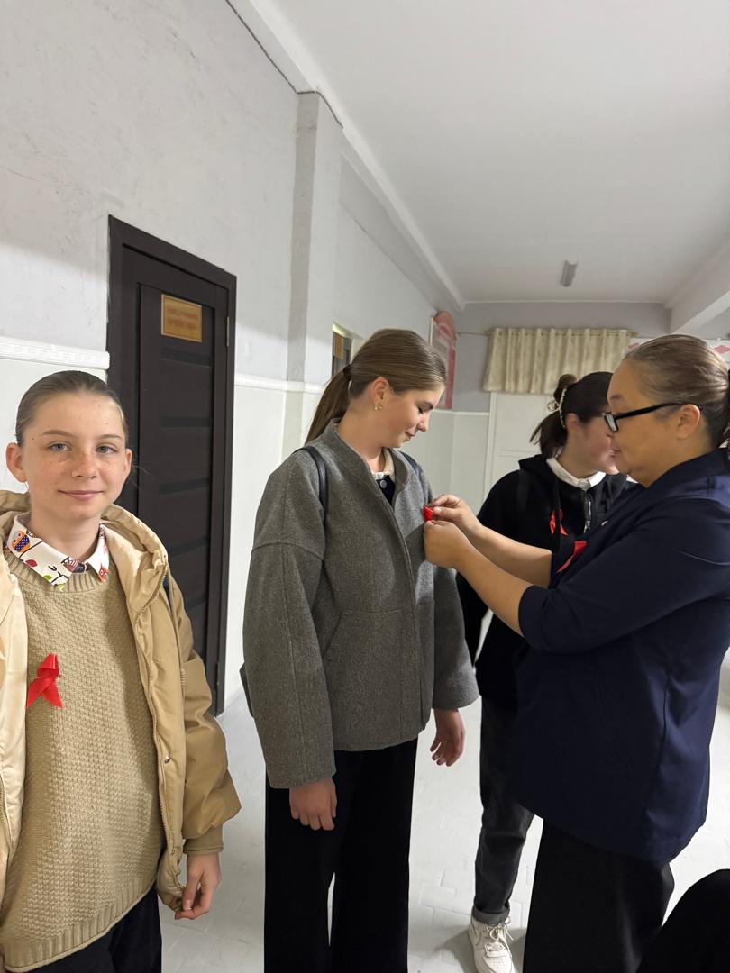 2 декабря в общеобразовательной школе 8 г. Кара-Балта прошла акция «Красная лента», посвящённая 1 декабря — Всемирному дню борьбы со СПИДом. Такое мероприятие мы проводим ежегодно. В этот же день мы организуем с детьми беседы и воспитательные часы: с младшими ребятами говорим о здоровом образе жизни, а со старшими обсуждаем важность информированности и профилактики. Если существует проблема, мы не должны о ней забывать. Ребята получили полезные знания: кто предупреждён, тот защищён.